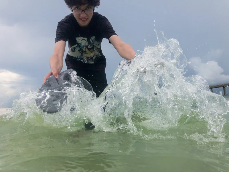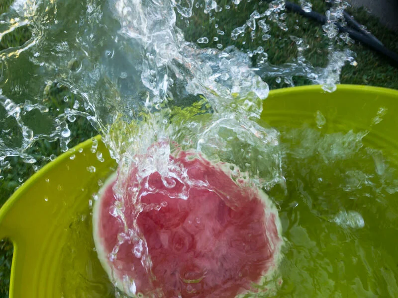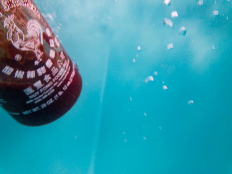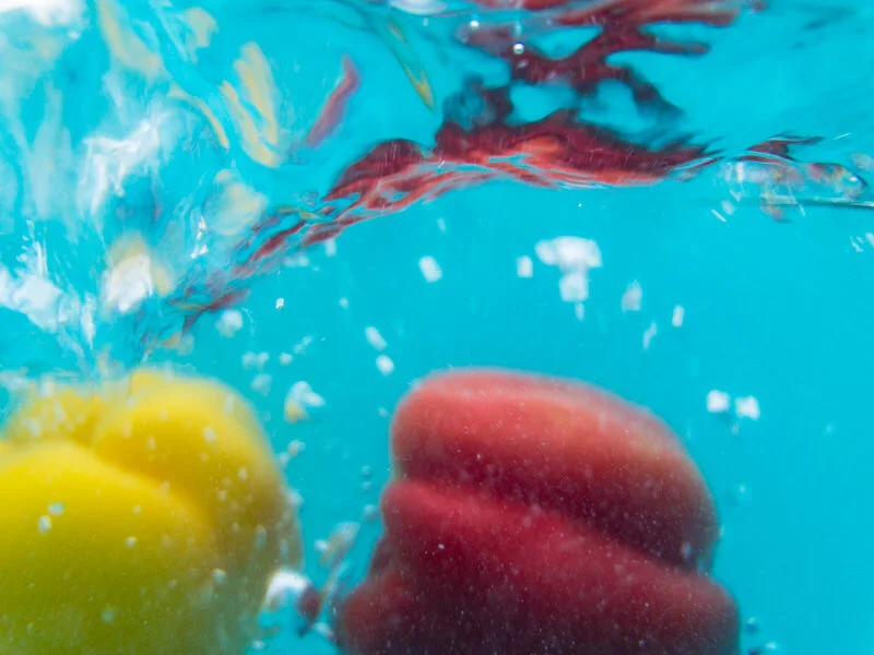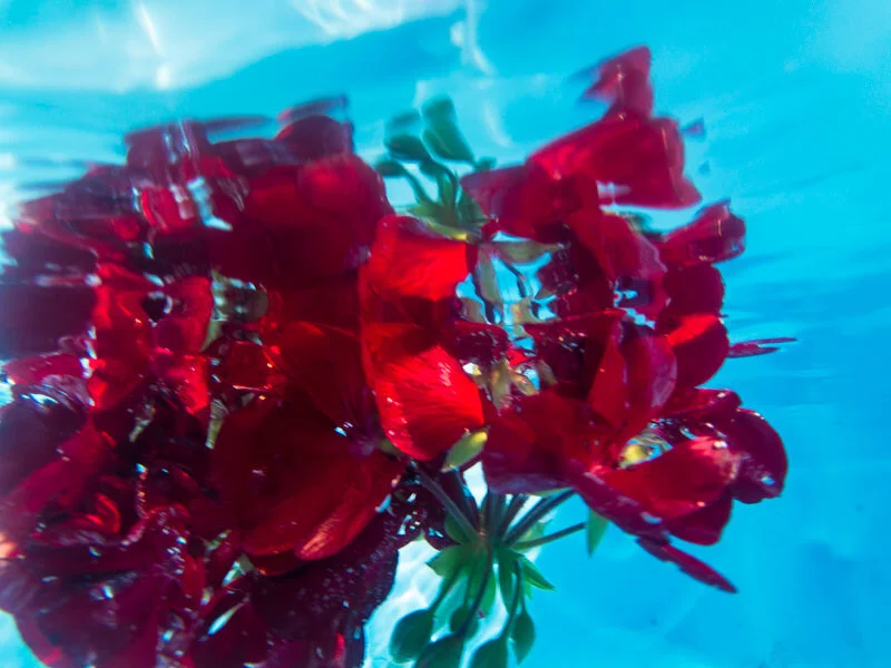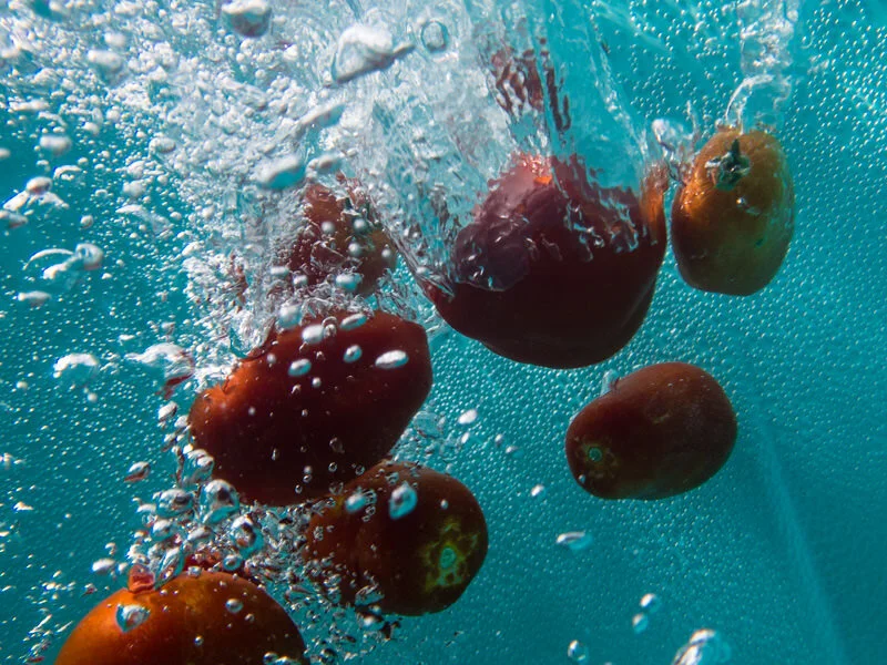 For 100 days, I created an image involving water each day. Using an underwater housing for my phone, I explored reflections, distortions, and movement beneath puddles, streams, lakes, faucets, and fountains—even an ice-water jug. Toward the end, I embraced a phase I called “chuck it in a bucket,” tossing fruit and household objects into a large tub of water, photographing how they floated, sank, or transformed.